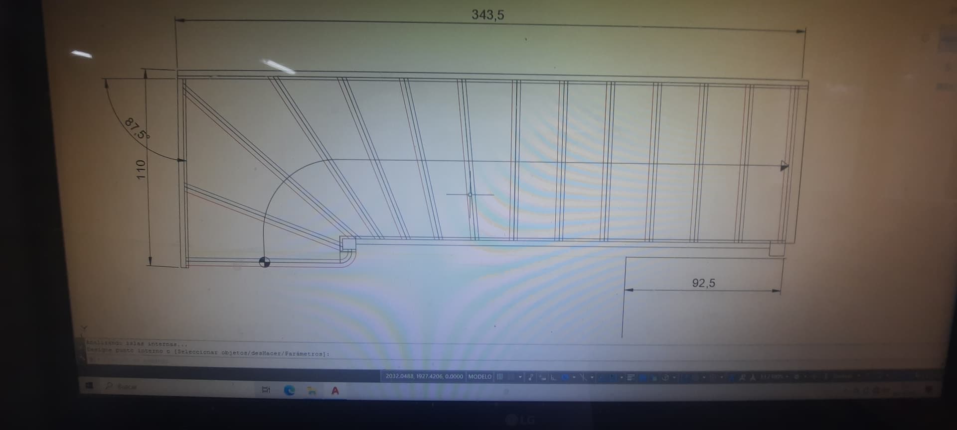 La curvatura de las zancas es debida a la compensacion de los peldaños.