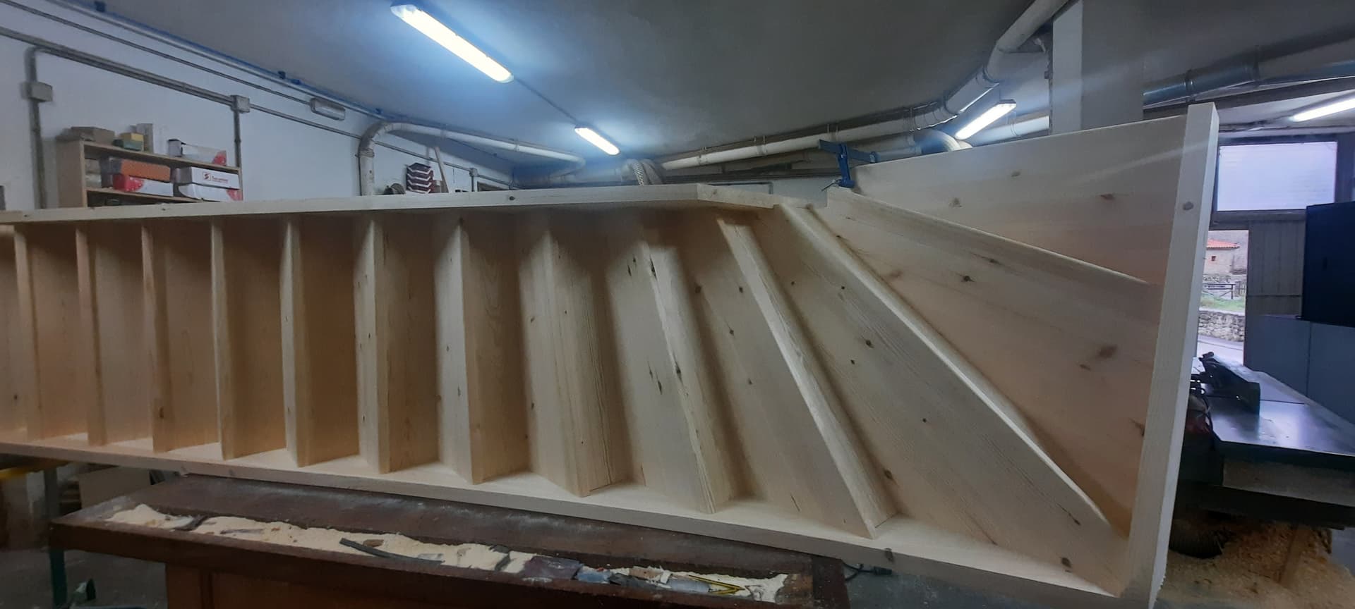 Buenas!! Pues aqui va otra que acabo de armar, muy parecida a la anterior, cuarto de vuelta derecha ahusada en el arranque, de pino norte como cae