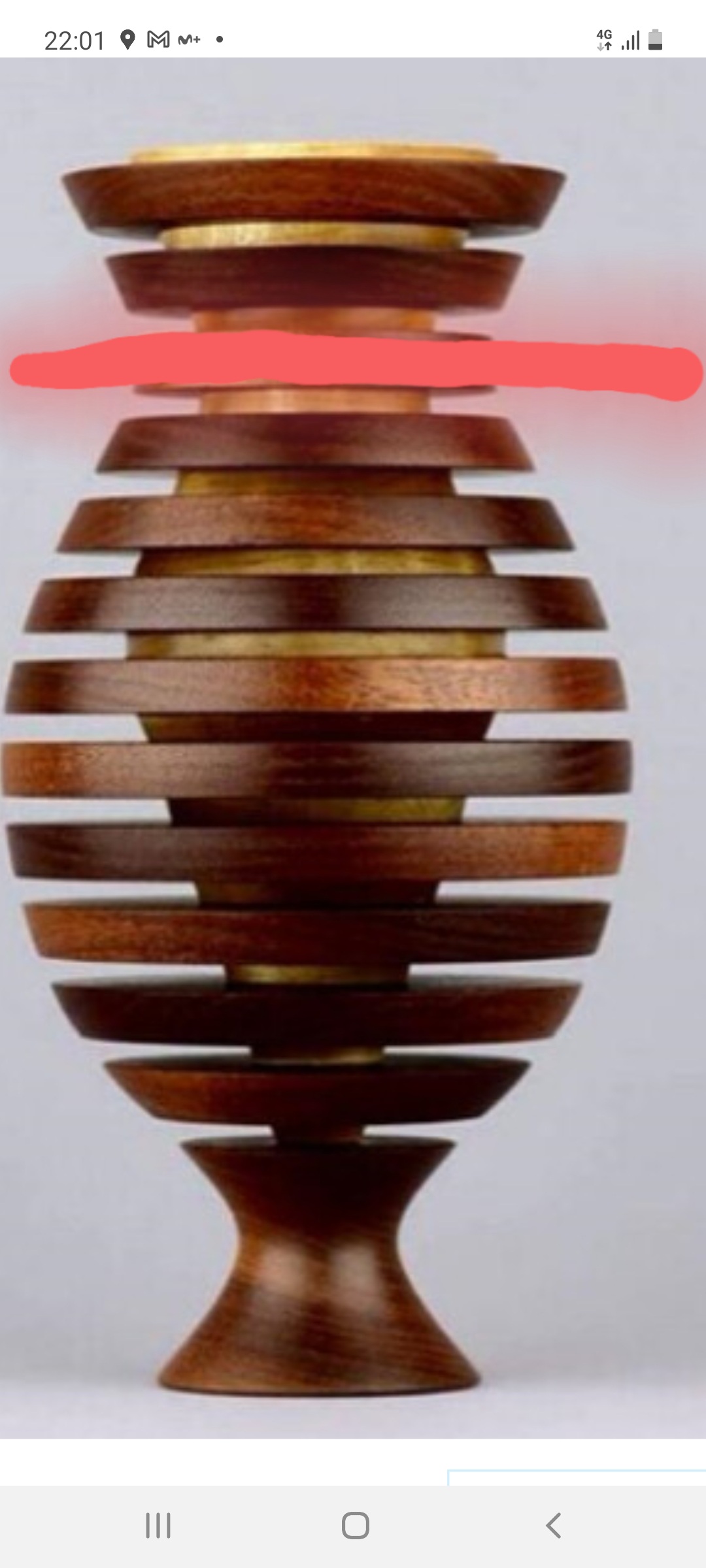 Esa opción es nivel pro avanzado, ajustar los huecos de los aros para que encaje bien el el jarrón interior macizo no es nada fácil, si fuera un cilindro yo lo haría así pero siendo cada hueco de cada segmento de un diámetro distinto y cada cara de cada segmento con diámetros distintos también la cosa se complica, se puede hacer con paciencia cogiendo bien las referencias del jarrón macizo… Desde luego sería la opción más robusta, elegante y también creo que la más compleja.