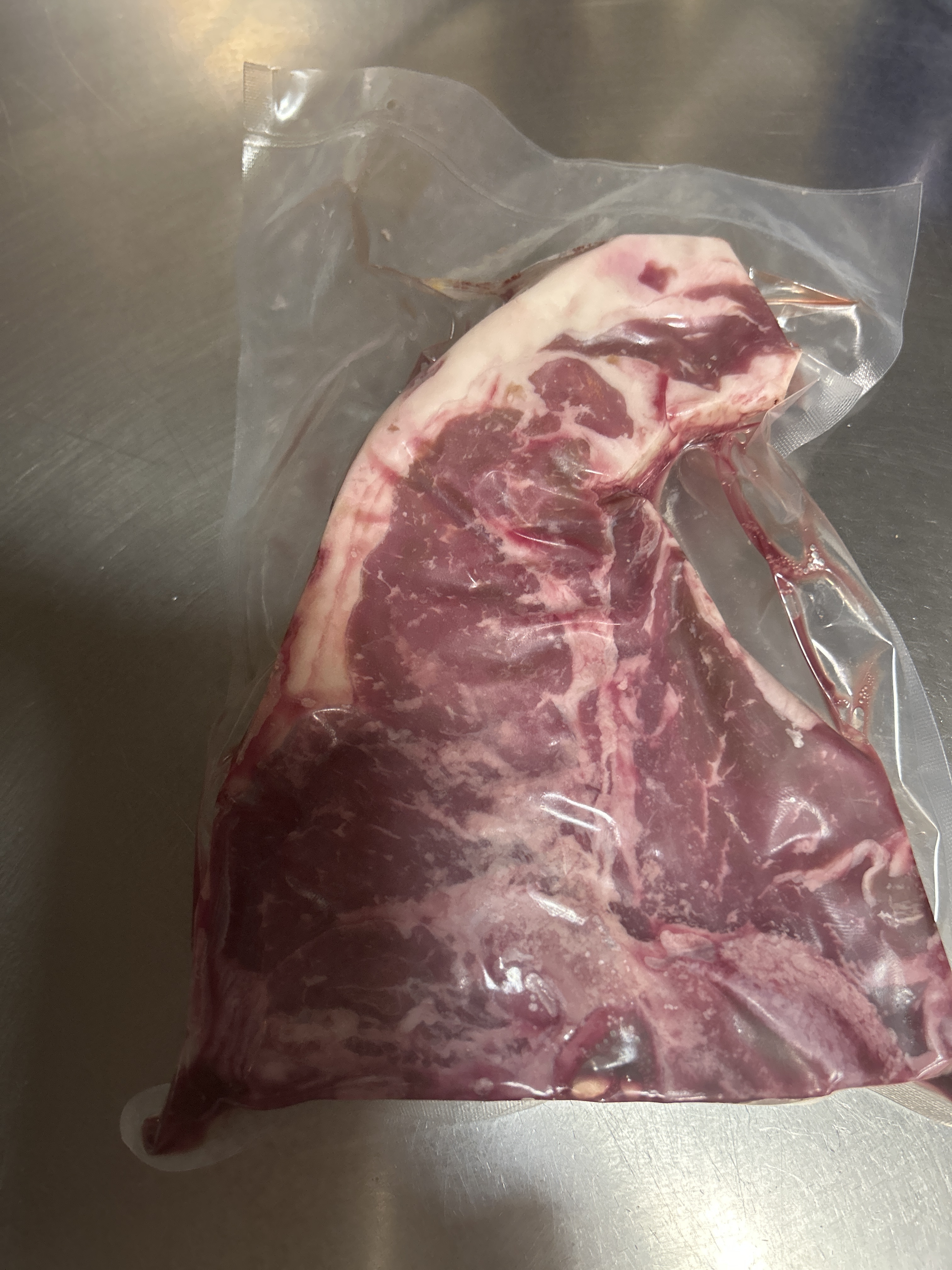 Tendencias que salen @Marin1 reinventar o inventado. La t es por la forma que toma el hueso . Es el lomo de vaca cortado con solomillo. La parte derecha solomillo la izquierda lomo bajo. El lomo alto no tiene solomillo. Una forma de probar las dos cosas en un plato
